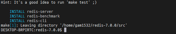 그럼 redis-7.0.0 폴더에 들어가서 make 명령을 실행해 봅시다! 아래와같이 명령어를 치면 됩니다.