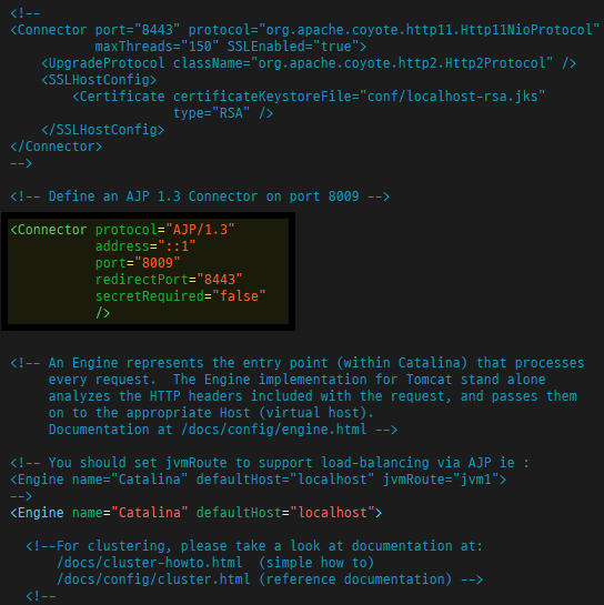 아파치 웹 서버 쪽 설정이 끝났으니 이제는 톰켓 서버 쪽 설정을 하겠습니다. 앞에서 작성한 workers.properties에서 정의한 정보를 톰캣에서 활성화 시키면 됩니다.