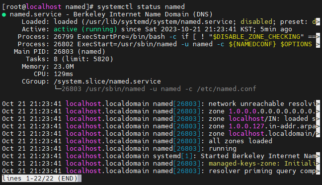 위 그림과 같이 active (running) 이라고 뜨면 일단은 네임서버가 기동 되었습니다.