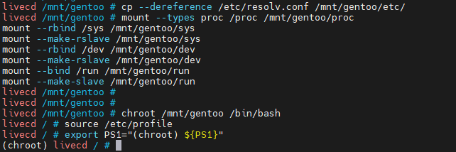 cp --dereference /etc/resolv.conf /mnt/gentoo/etc/